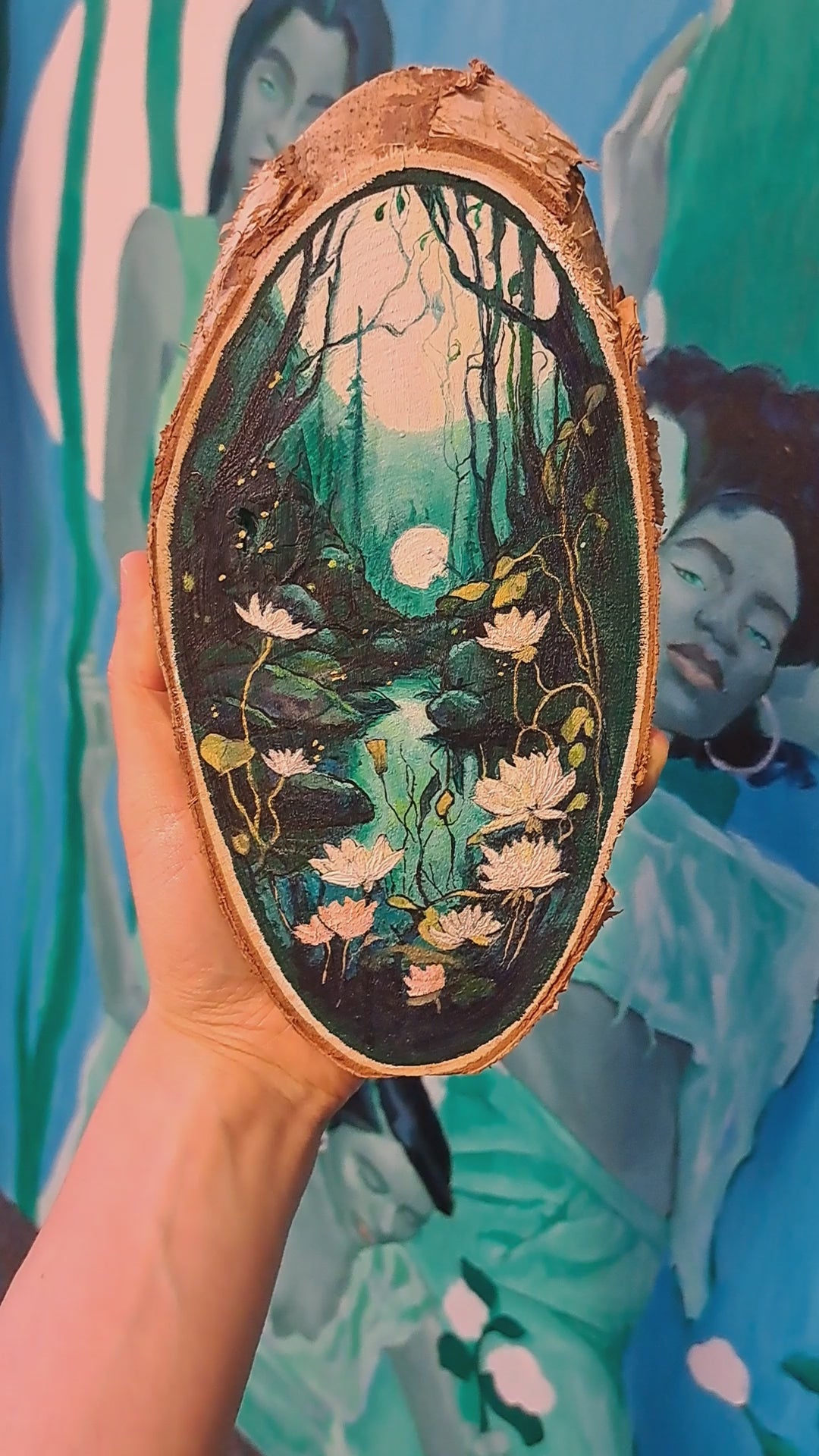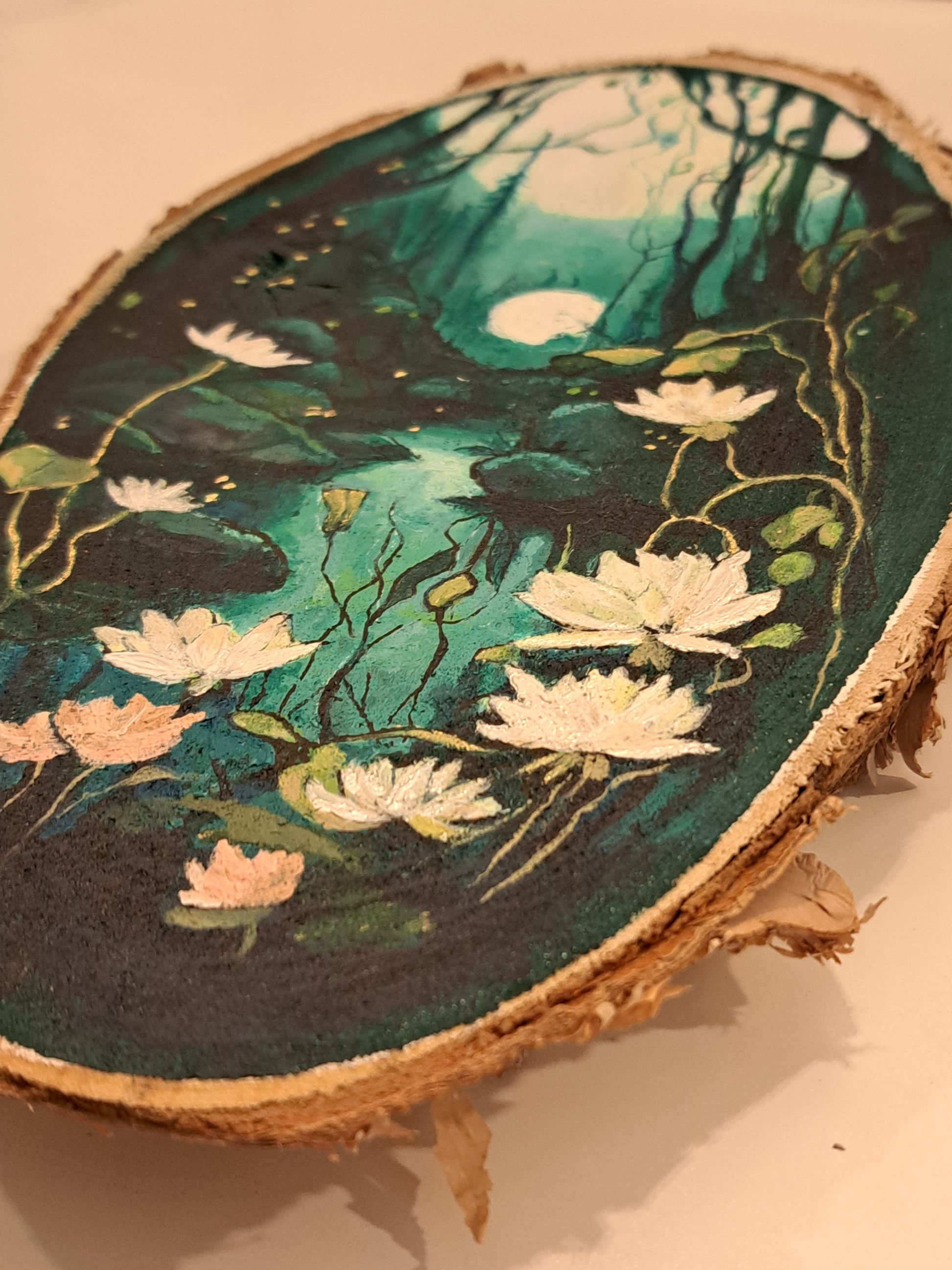 Hang the Moonlit Enchantment painting in a place of prominence in your home or office, where its mystical presence will create a serene and inspiring atmosphere.